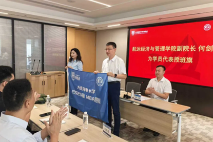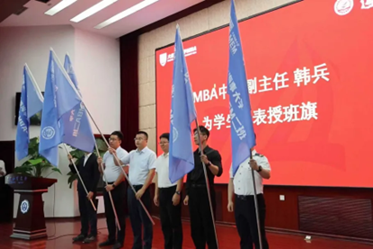 副院长何剑彤、MBA教育中心副主任韩兵为各班学生代表授班旗。