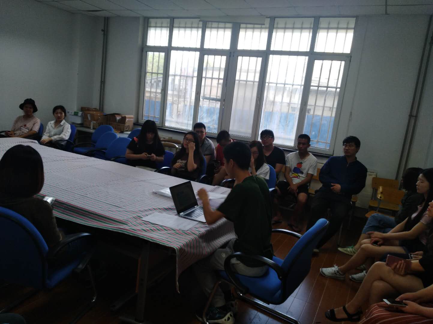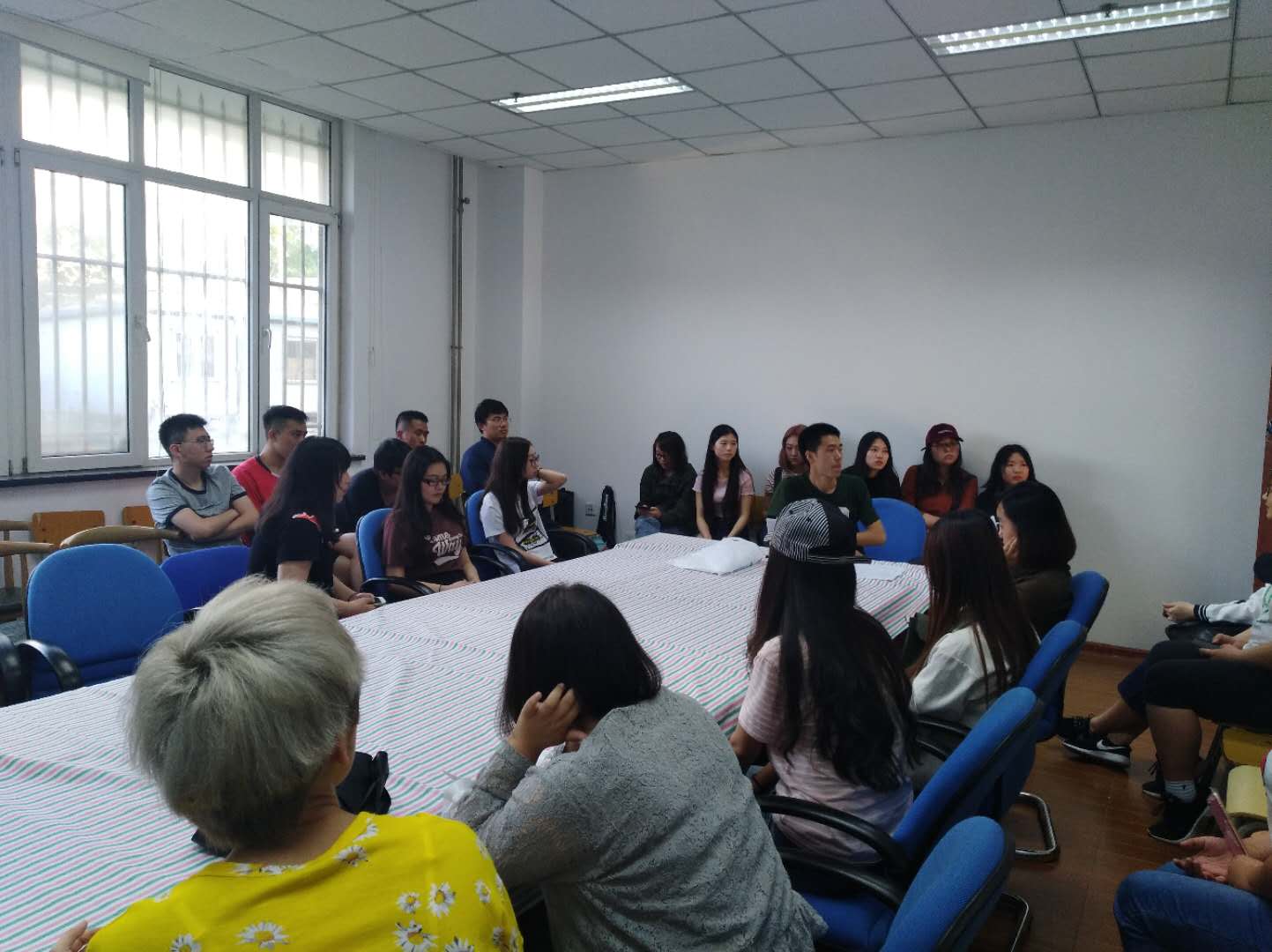 在英华一公寓学生工作办公室开展毕业生座谈会,毕业班指导员陈泽羽和各专业应届毕业生代表参加了本次座谈。