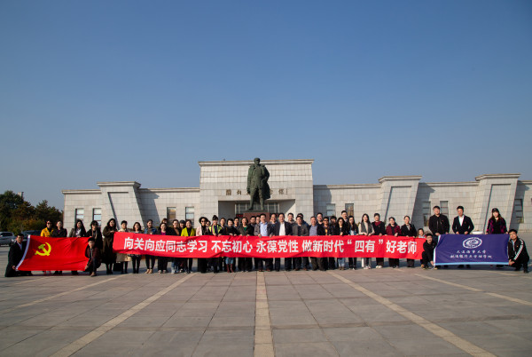 最后,学院全体党员在关向应同志铜像前合影留念,学院党委向全体党员教师发出了向关向应同志学习,不忘初心,永葆党性,做新时代“四有”好老师的强烈号召。