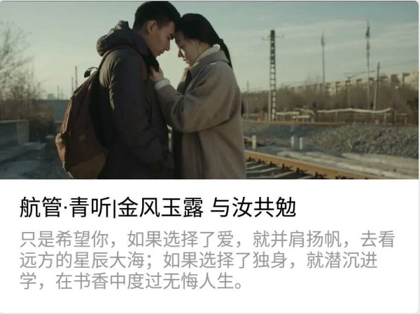 参赛成员的心路历程,告诫大家应不忘初心,不轻言放弃;第二篇为《菊花开出乃重阳》,分享了新同学离家时思念家人的复杂情绪,同时又寄托了对家人的感激与祝福;11月11日发表了第三篇文章《金风玉露 与汝共勉》,希望大家如果选择了爱,就并肩扬帆,去看远方的星辰大海;如果选择了独身,就潜沉进学,在书香中度过无悔人生。